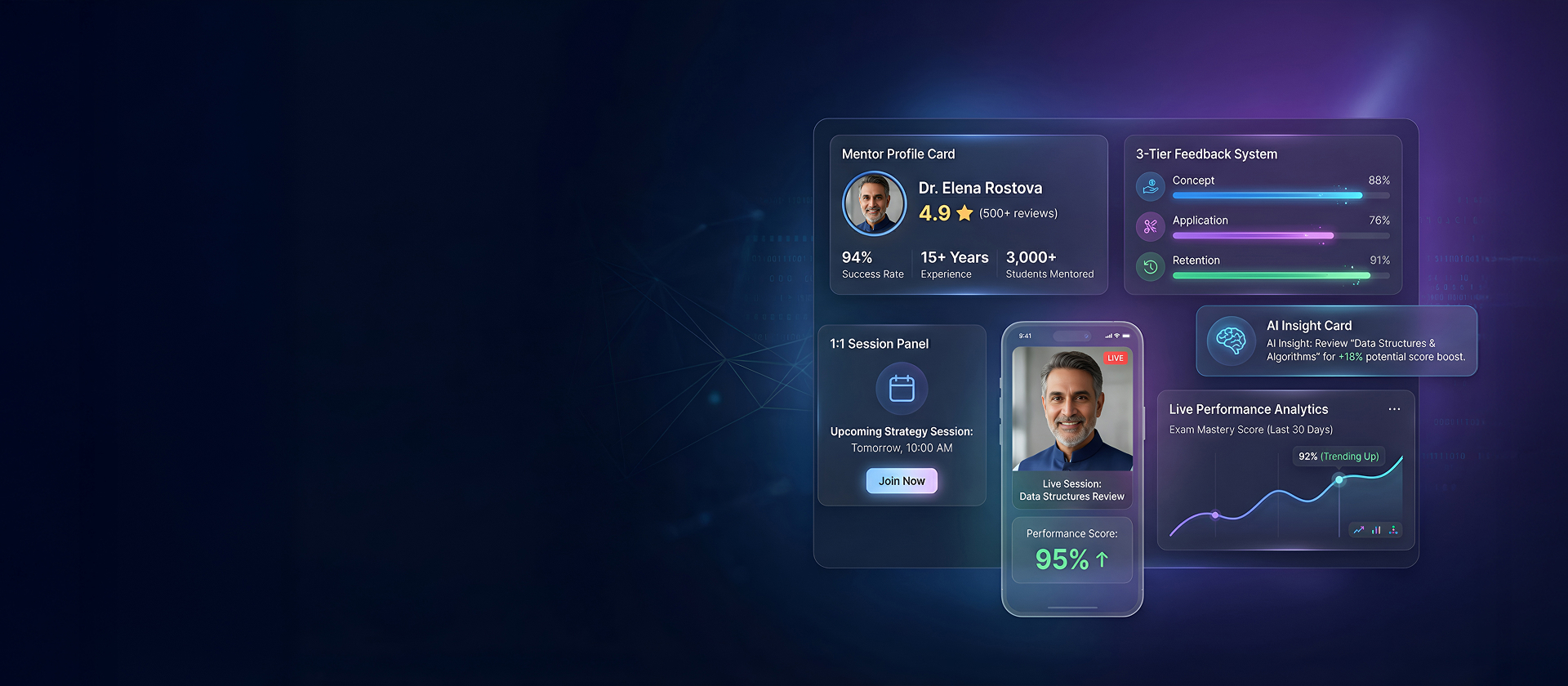 Join aspirants who've transformed their preparation from overwhelming to optimized. Experience mentorship that combines human expertise with technological precision.